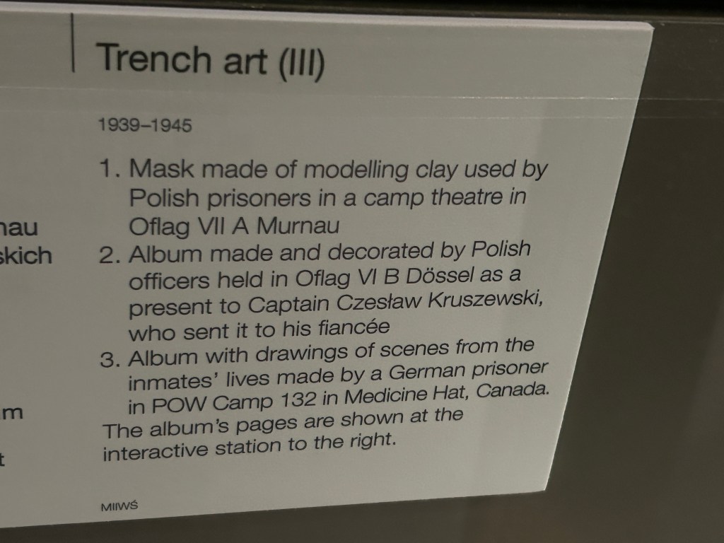 Oflag VII-A, based in Murnau, Germany, was a Polish prison camp for mainly high-ranking officers. Although their environment and experience were much more pleasant than other camps, it was still oppressive and those imprisoned feared for what was to come for themselves, their country, and those they loved. Theatre – live and puppet – were an escape and a source of energy to keep moving forward. Supposedly, they did such a fine job at it that even Nazi officers of the camp and their wives would attend the performances. The mask in the photo is on display at the Museum of the Second World War in Gdansk, Poland.